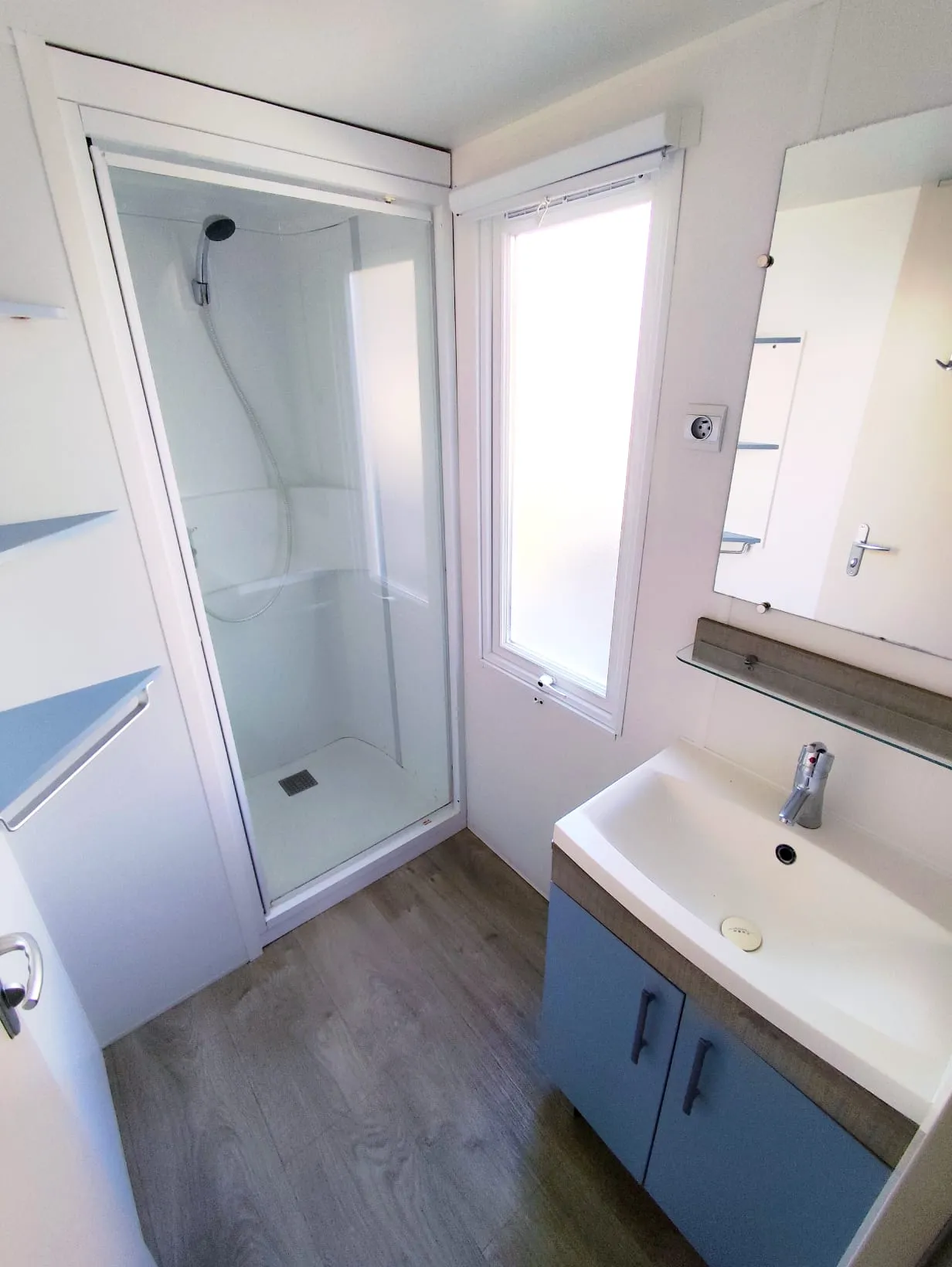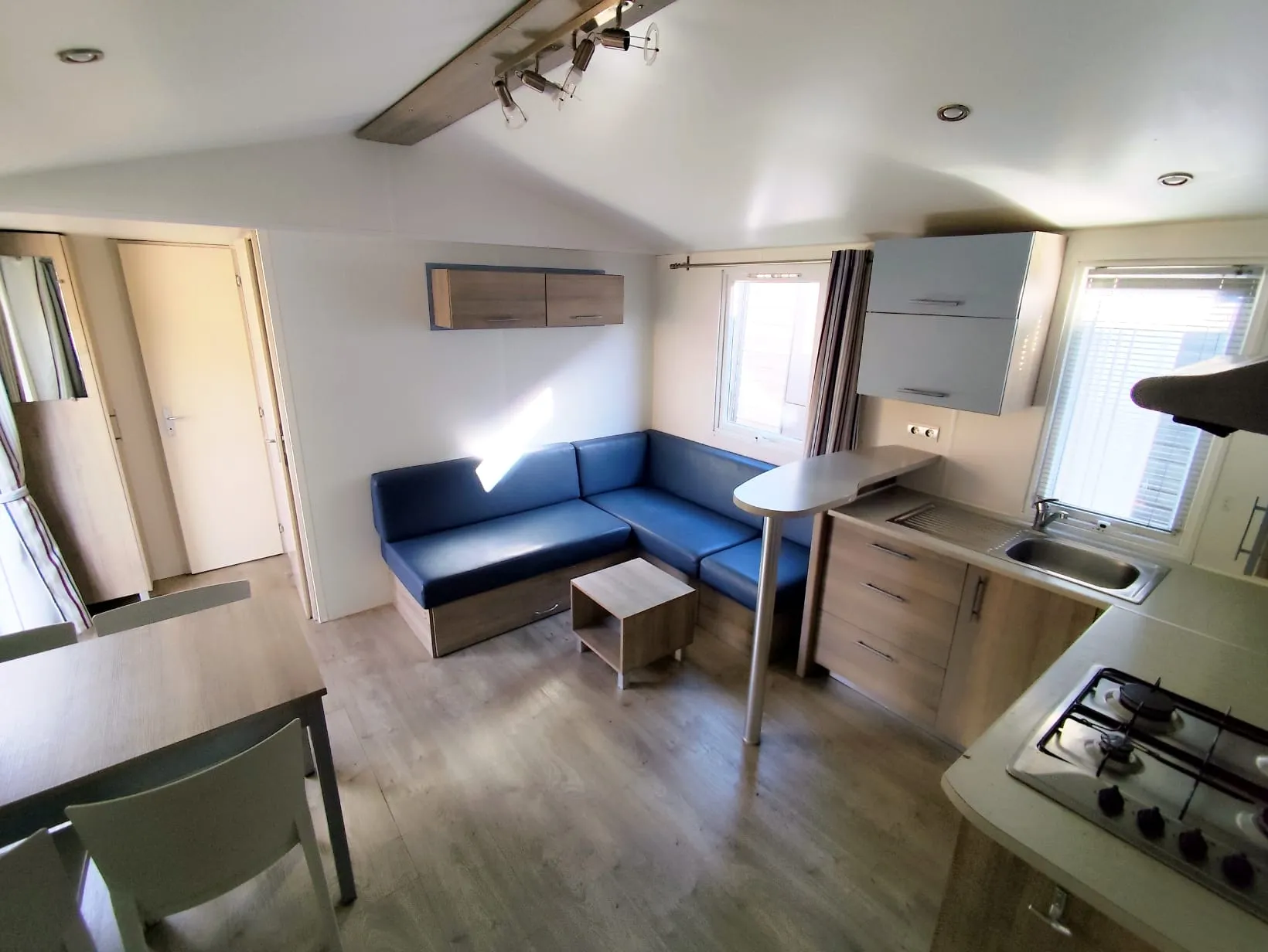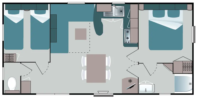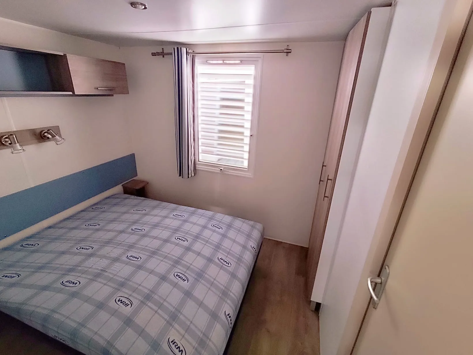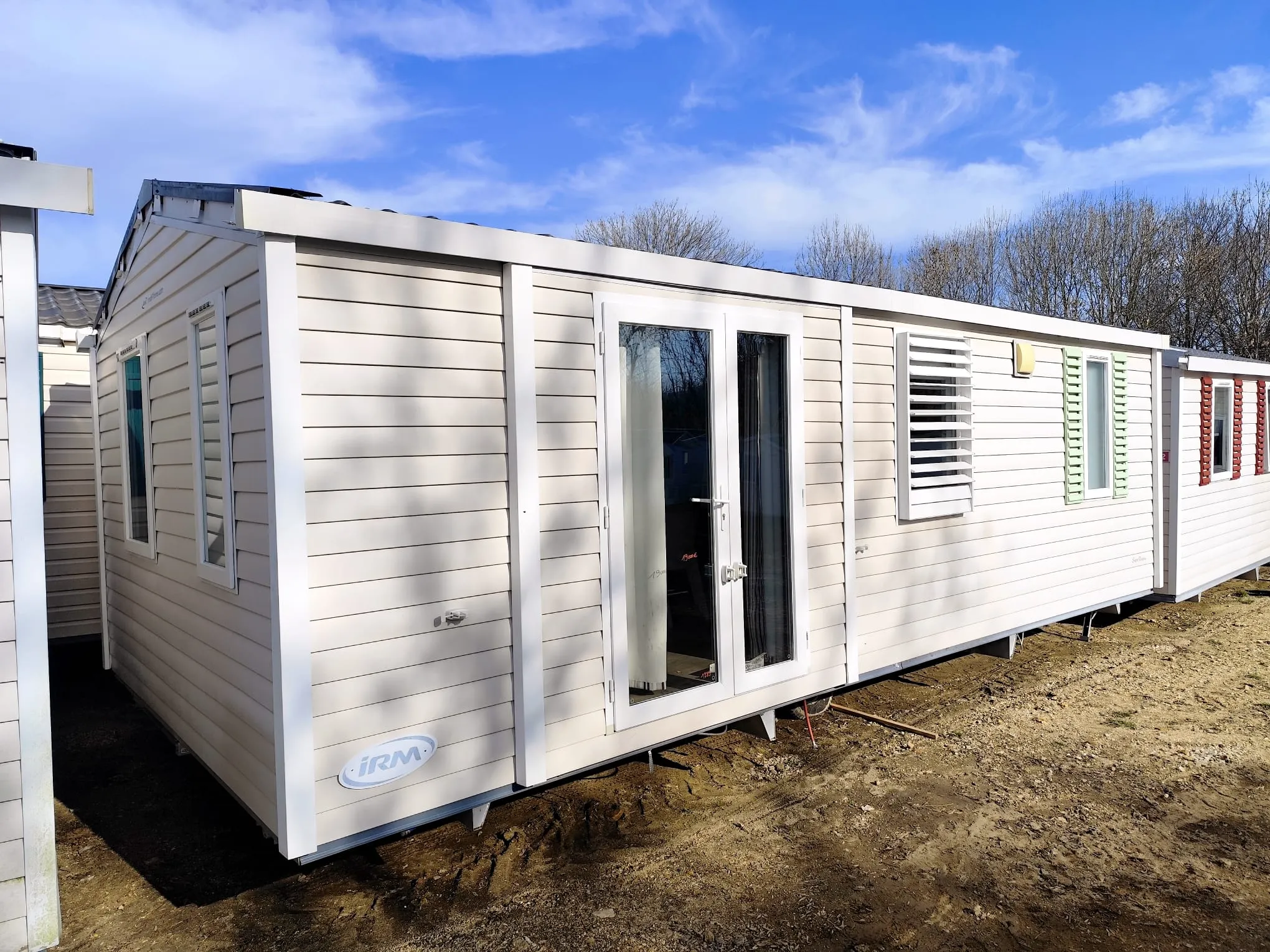 Mobil home IRM Super Titania de 8 m par 4 m, 2 chambres, accès direct de la chambre parentale à la salle de bain, double vitrage, bardage PVC, salle de bains, wc séparés, 19 000 € TTC (15 483 € HT) livré avec révision soignée.